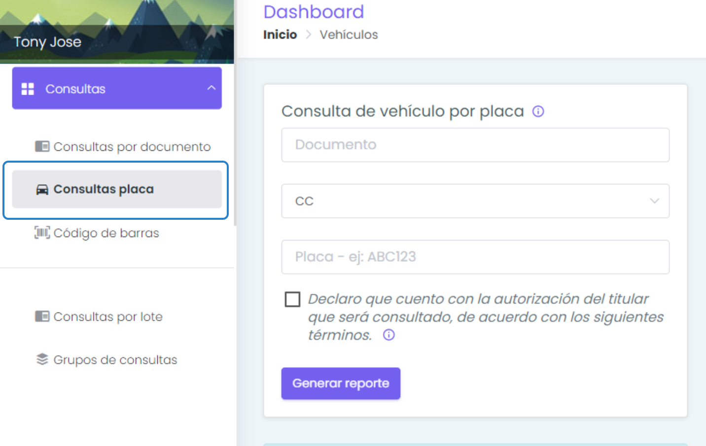 Pasos para realizar una consulta de Placa