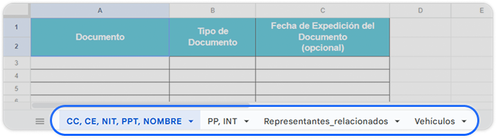 - Error: Una o varias columnas contienen un encabezado incorrecto. Los encabezados esperados son: ['Documento', 'Tipo de documento', 'Fecha de expedición del documento']